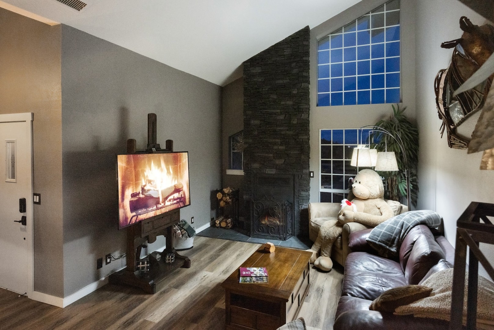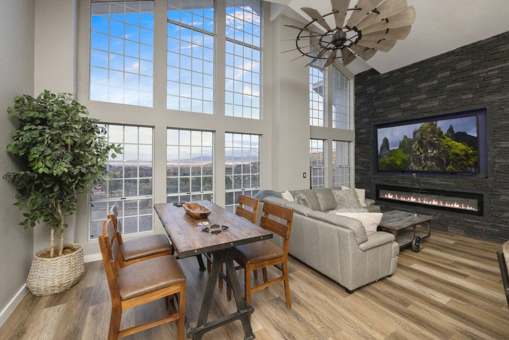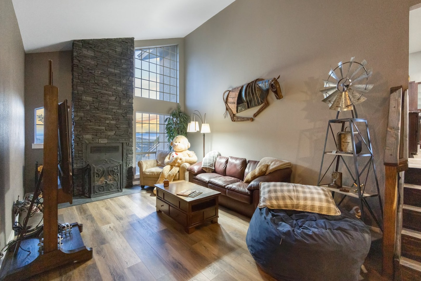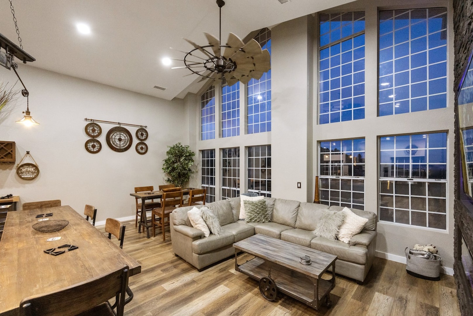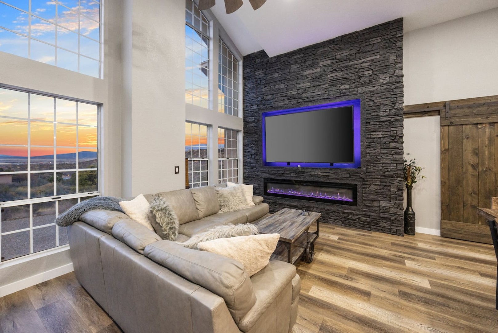 This 4,000+ sq. ft. hillside retreat sleeps up to 22 guests, offering 3 spacious living rooms, a game room, firepit, outdoor café seating, a brand-new hot tub, and even horse stalls!