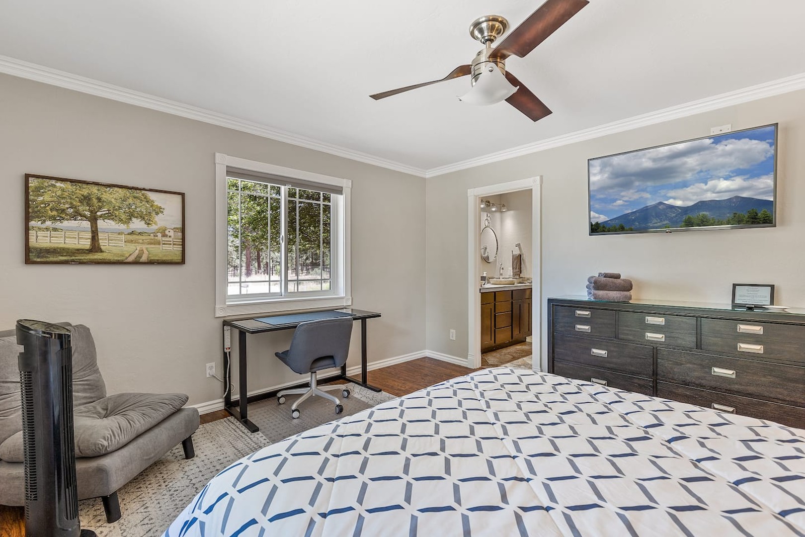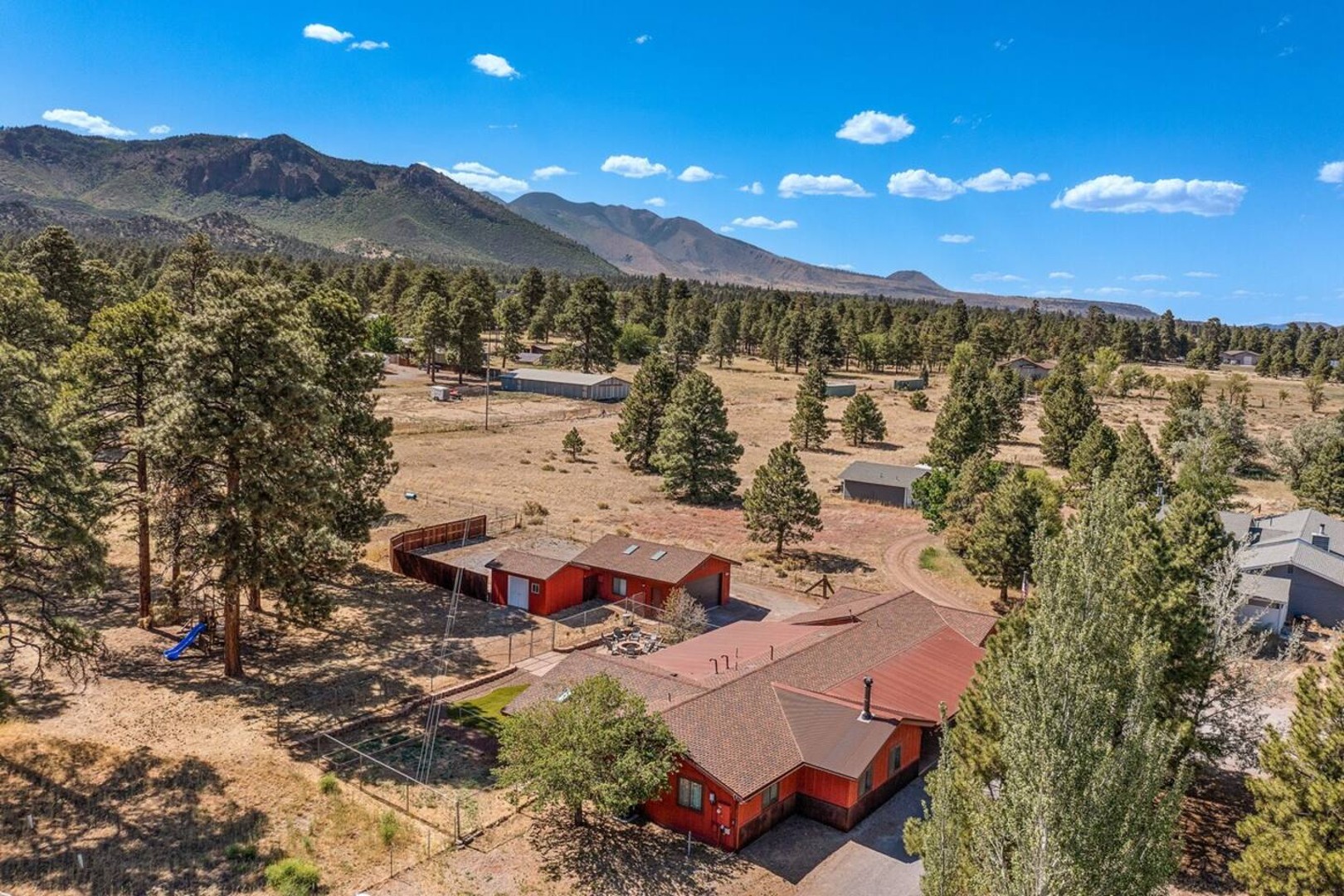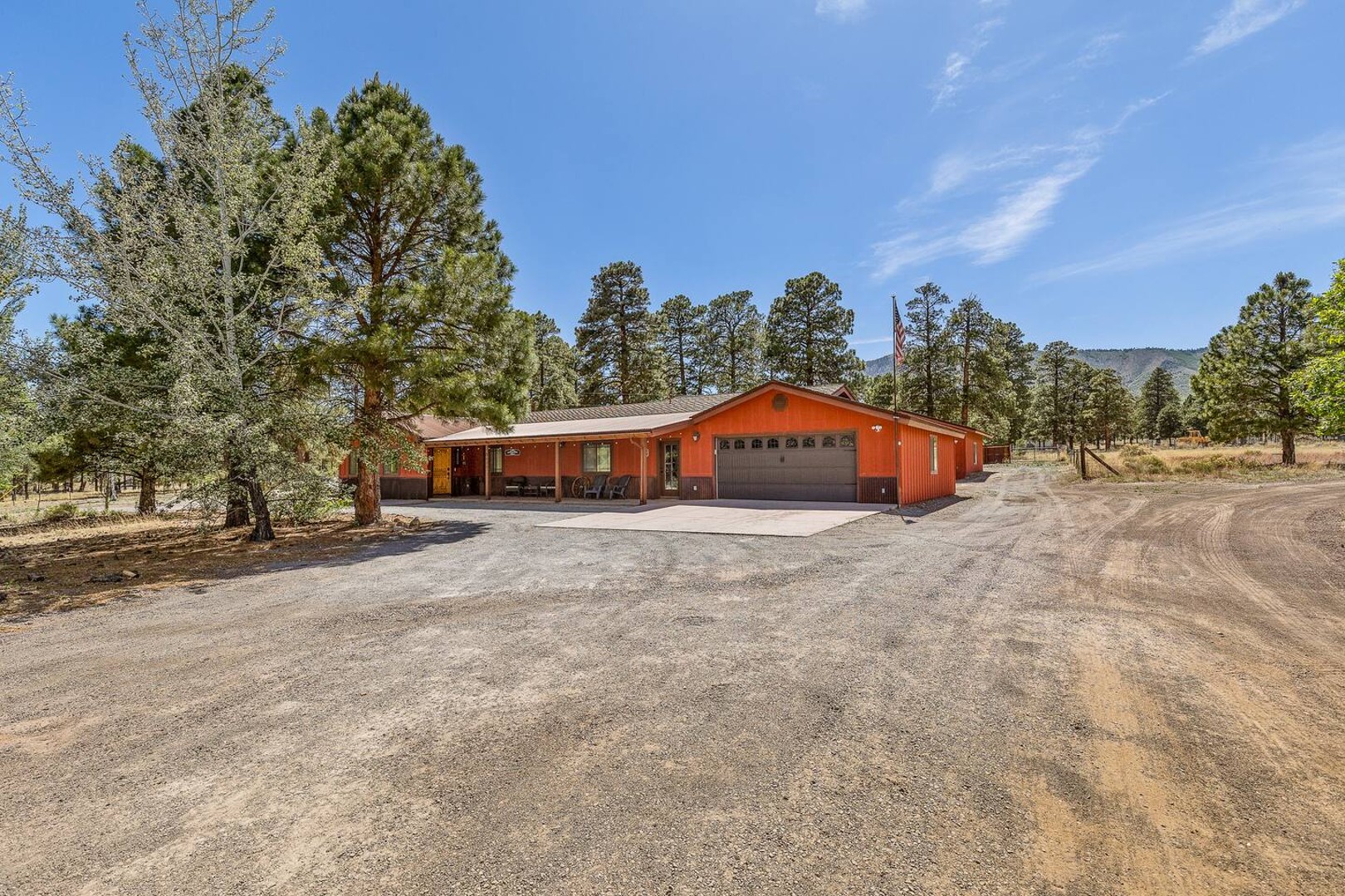 Nestled on 2.5 acres of Ponderosa Pines, enjoy stunning views of Doney Park East ridges with direct hiking & biking access. This modern retreat has everything you need for an unforgettable stay!