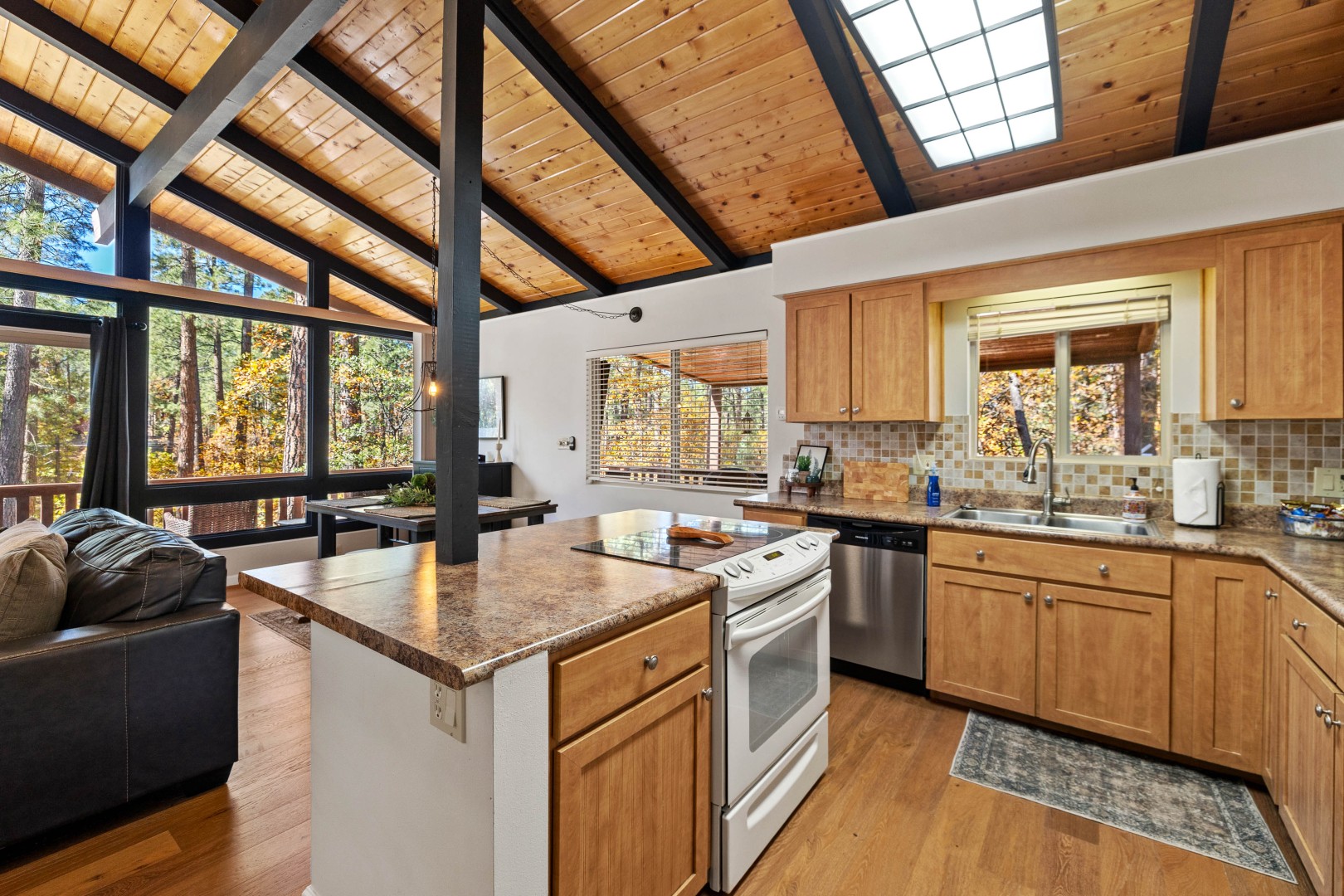 This rustic, cozy cabin is your perfect base for exploring Prescott, Sedona, or the Grand Canyon. With space for eight, it’s a warm retreat after a day in the pines.- Bi level for added privacy