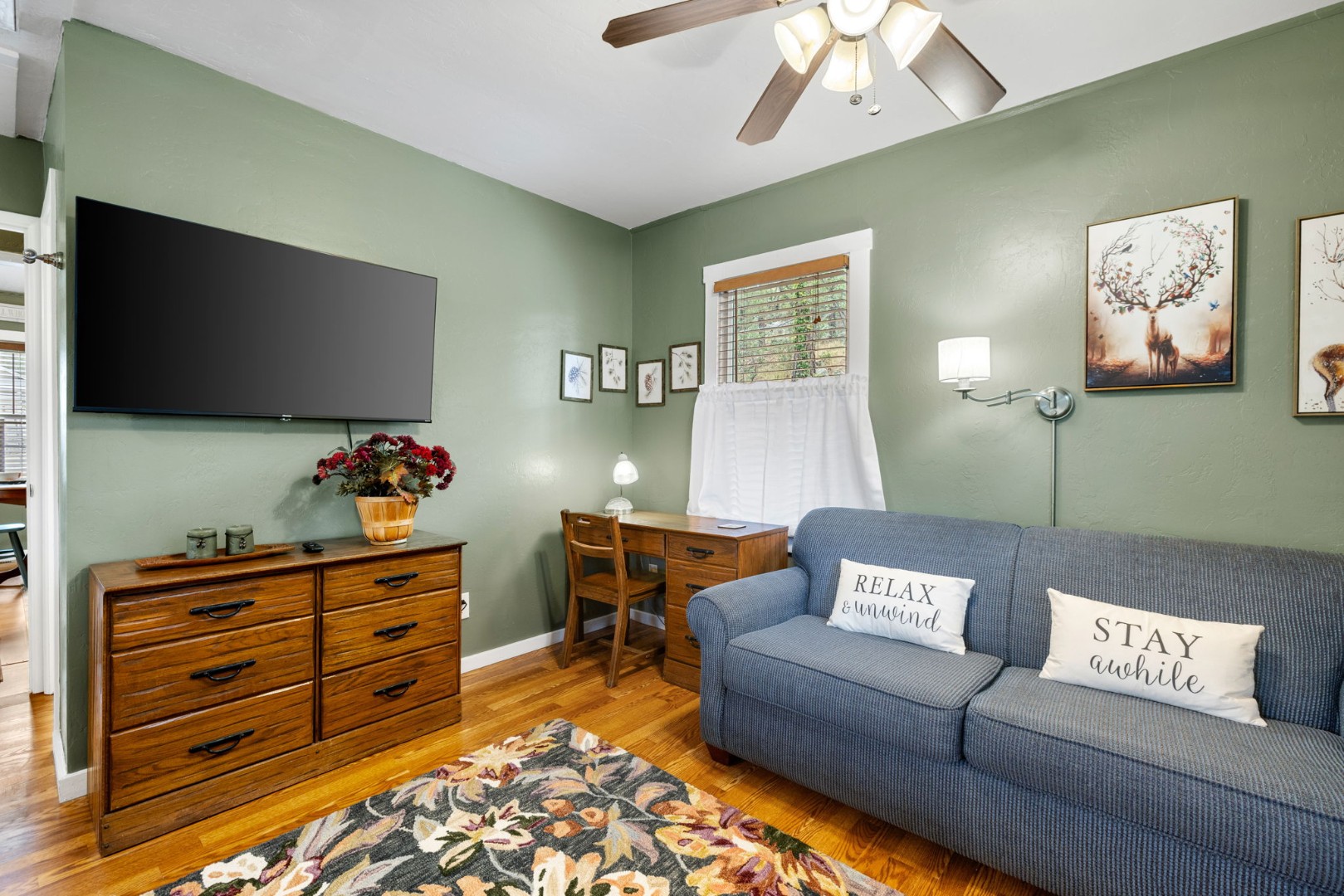 Prescott Mountain Pines Cabin - A Peaceful Escape in the pines of Prescott. Tucked away in the Mountain Club on the perimeter of the historic town of Prescott, AZ, this charming and relaxing dog-friendly Cabin offers the perfect blend of rustic comfort and modern amenities. Surrounded by tall pines and peaceful nature, yet less than 5 minutes to historic Court house , Whiskey Row, charming historic buildings, local shops, a thriving culinary scene, museums, and more.Details