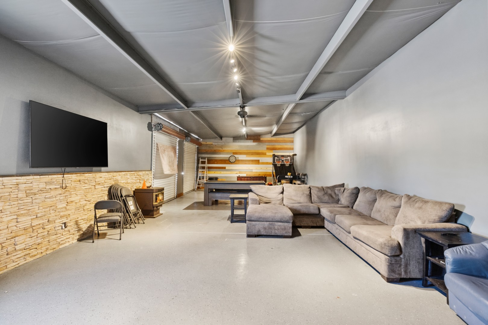 The smart TV offers access to Netflix, Roku, and other streaming platforms—please note there is no cable service.