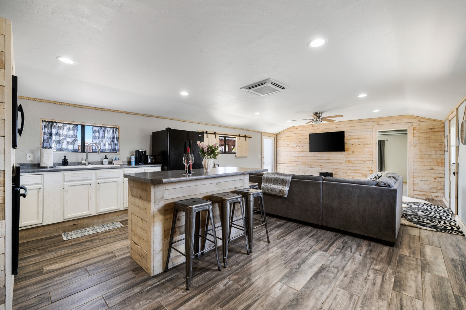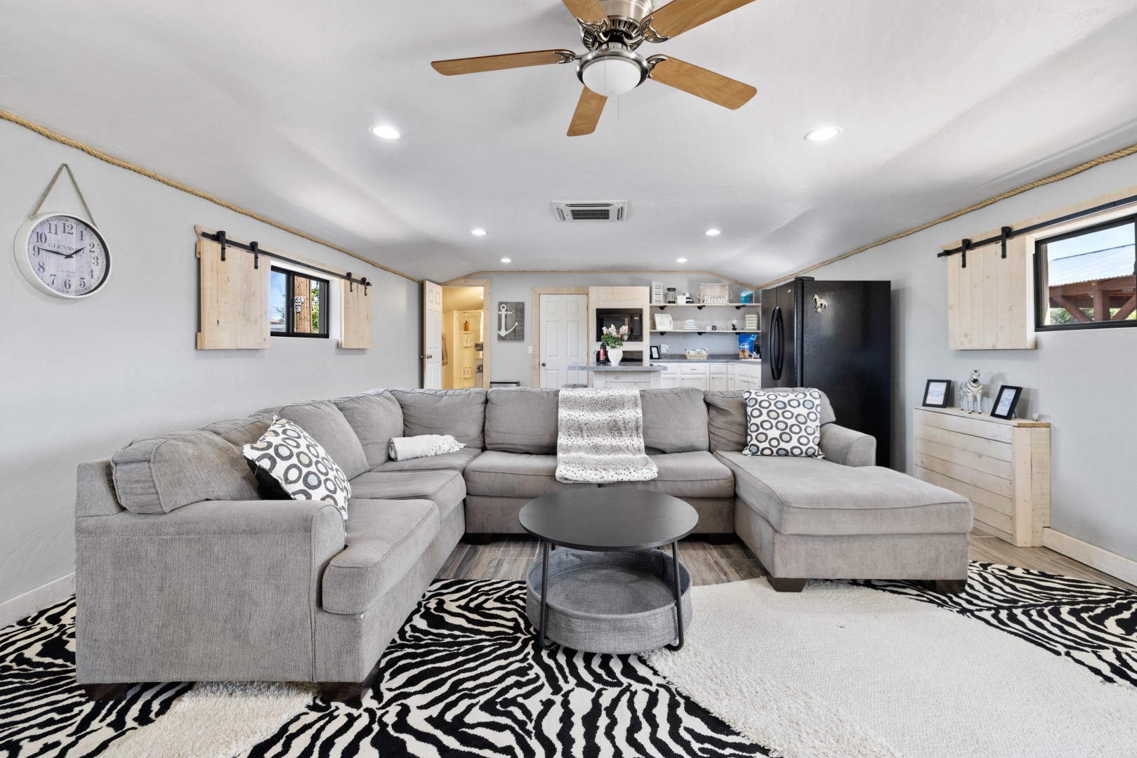 Experience the Wild Side with three homes on a 10-acre zebra ranch! This 6-BR, 4.5-bath retreat sleeps up to 16, with zebras, yaks, pigs & more—just 1/4 mile from Granite Mountain Trailhead and 15-20 mins to downtown Prescott. The property includes a Main House, Cottage, & Tiny home within walking distance to one another!